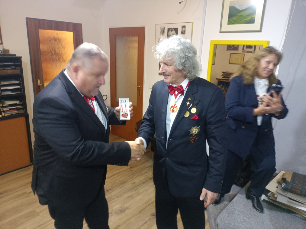 „Já se tady v Jemnici cítím jako doma. Na náměstí je kostel sv. Stanislava – a já se jmenuji Stanislav. Město samo o sobě je překrásné, nejen zámek, ale i park se dvěma rybníky si zaslouží pozornost. A naše vize do budoucnosti? Pokračovat v započatém úsilí, nepolevovat a pracovat dále k završení díla. A to i přes překážky. Tou zatím největší se ukázal havarijní stav zámecké půdy, kde je třeba vyměnit nosné i příčné trámy, které jsou místy zcela prohnilé. Ministerstvo kultury je nám v tomto směru velmi příznivě nakloněno, již jsme obdrželi několik milionů korun. A v okamžiku, kdy budou práce na půdě ukončeny, začneme s renovací veškerých místností, nacházejících se na straně jižní, východní a částečně i západní, kde svítí slunce. Část severní bude sloužit vojenskému muzeu. Plány máme, finanční prostředky musíme však teprve získat. Co je zajímavé? Že už na zámku bydlí první veterán, kapitán ve výslužbě Pavel Herna se zde stal kastelánem. A já zde také bydlím,“ usmívá se generální převor řádu cyriaků Jiří Stanislav. „Tak už jsme dva. A další, doufám, budou časem přibývat,“ dodal. Na závěr setkání prošli účastníci částí historické Jemnice a představitelé cyriaků položili kytice bílých růží k památníku obětem holocaustu a k soše patrona svého řádu sv. Jana Nepomuckého. (www.trebicsky.denik.cz)